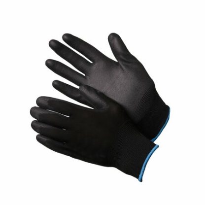 Перчатки, арт. 7502, нейлоновые вязаные, плотность вязки 13 с частичным полиуретановым покрытием черного цвета для защиты от механических воздействий, антистатичные. Тонкие прочные перчатки благодаря нанесенному на ладонную часть слою полиуретана являются наилучшим выбором при выполнении точных работ. Просим обратить внимание, что полиуретановое покрытие не проявляет стойкости при воздействии влаги, нефти, масел и прочих жидких субстанций.